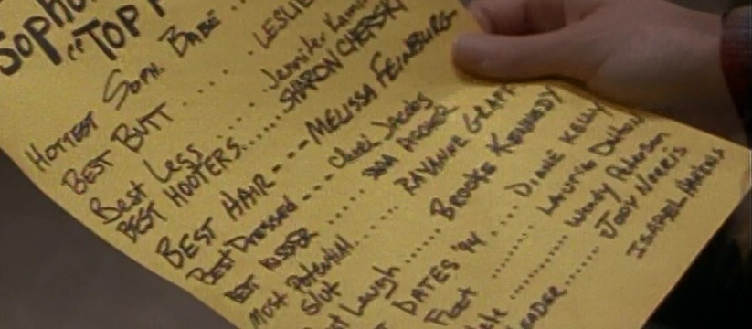 Also known as "The Poll". A list of girls in the sophomore class at Liberty High School ranked by best feature. It was created by unknown boys but Kyle admits that he knows some of the guys who wrote it, i.e. some were jocks. Even though this list is called "Top Forty" only fourteen names appear on the list.